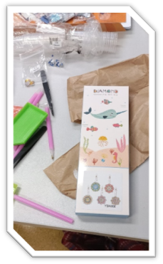 Fot. 4: Przybory do wyklejania diamencikami kolorowych obrazków.
