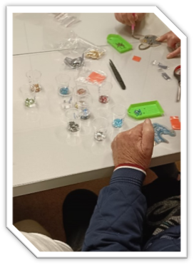 W rześki, październikowy dzień zawitaliśmy w jednym z naszych domów na ul. Rędzińskiej, by uczestniczyć w warsztatach decoupage z wyszywania kolorowych ozdób. Każdy z chętnych mieszkańców mógł wykazać się kreatywnością w tworzeniu zawieszek, które później były poddawane procesowi ozdabiania, a ściślej, oklejaniu tych zawieszek kolorowymi diamencikami, zabawa była przednia, a nasi mieszkańcy, jak to zazwyczaj bywa w sprawach związanych z wykazaniem się artystyczną inicjatywą, nie zawiedli.